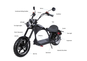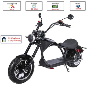 CityCoco M3 3000W erbjuder 3000 W motor och ett 60 V / 20 Ah litiumbatteri med avtagbar och låsbar konstruktion. Maxhastighet upp till 45 km/h. Utrustad med blinkers, ryggstöd, stötdämpning, och LCD-display – en gedigen maskin för både körglädje och trygghet. Fri frakt – alltid.