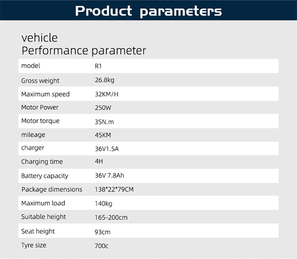 - Laddningstid: ~4 timmar (36 V 1,5 A laddare)