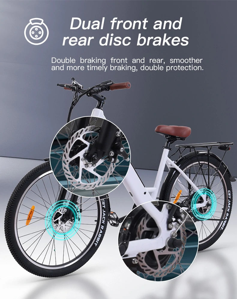 - Mekaniska skivbromsar fram & bak: jämn och pålitlig bromsverkan i alla väder.