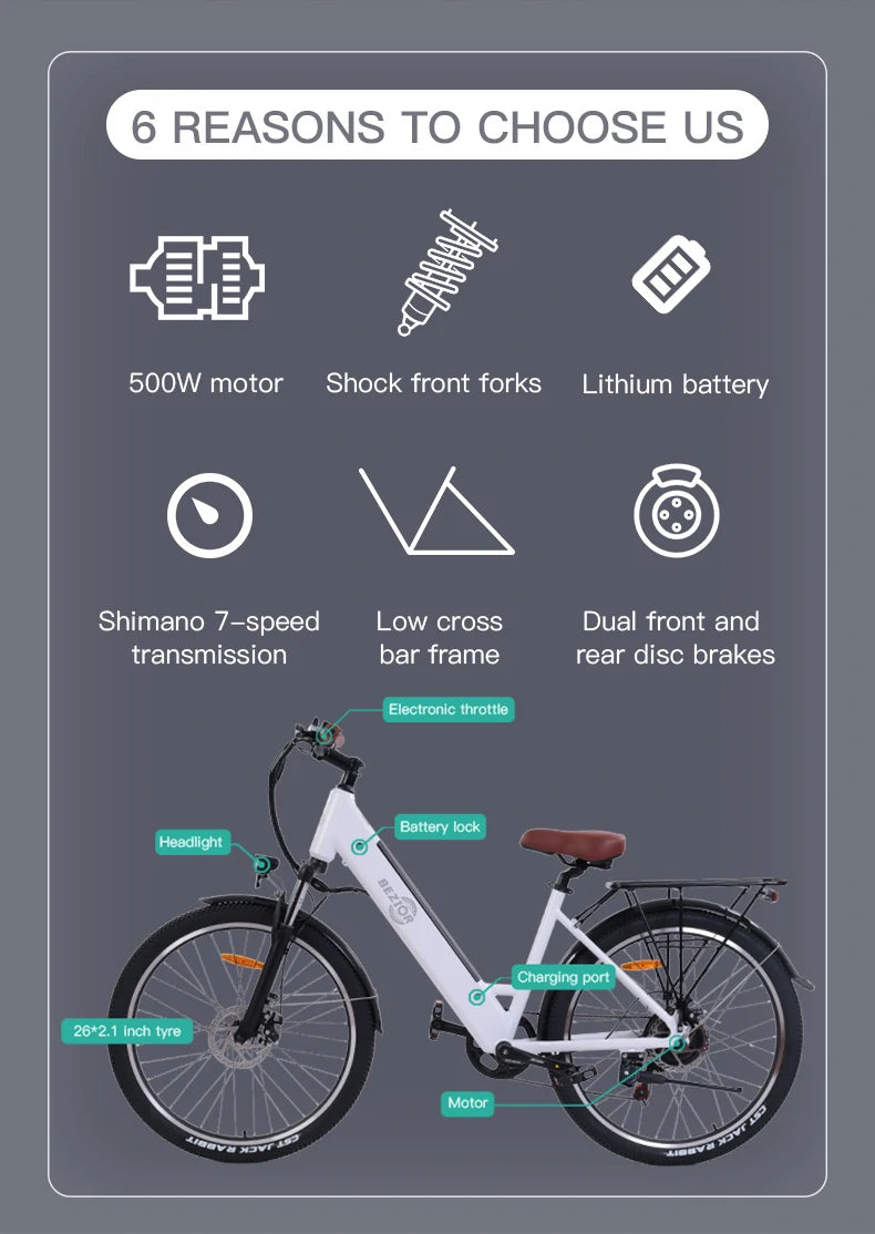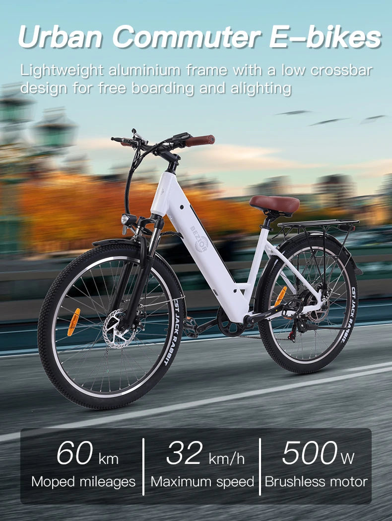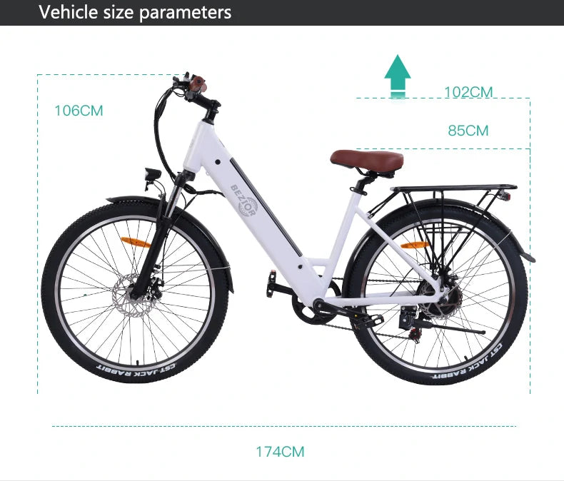 BEZIOR M3 är en sportig pendlar-/terränghybrid med 500 W borstlös motor, 48 V batteri och fjädrad framgaffel. Den rullar tryggt på blandat underlag och levererar effektiv assistans för både vardag och fritid. Fri frakt – alltid.
