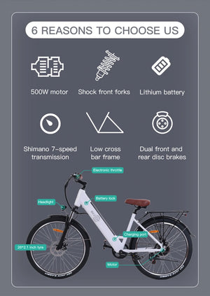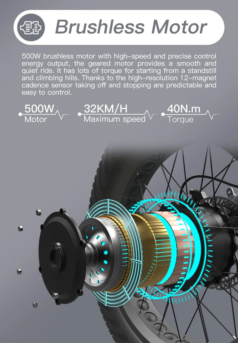 - Motor: 500 W borstlös baknav