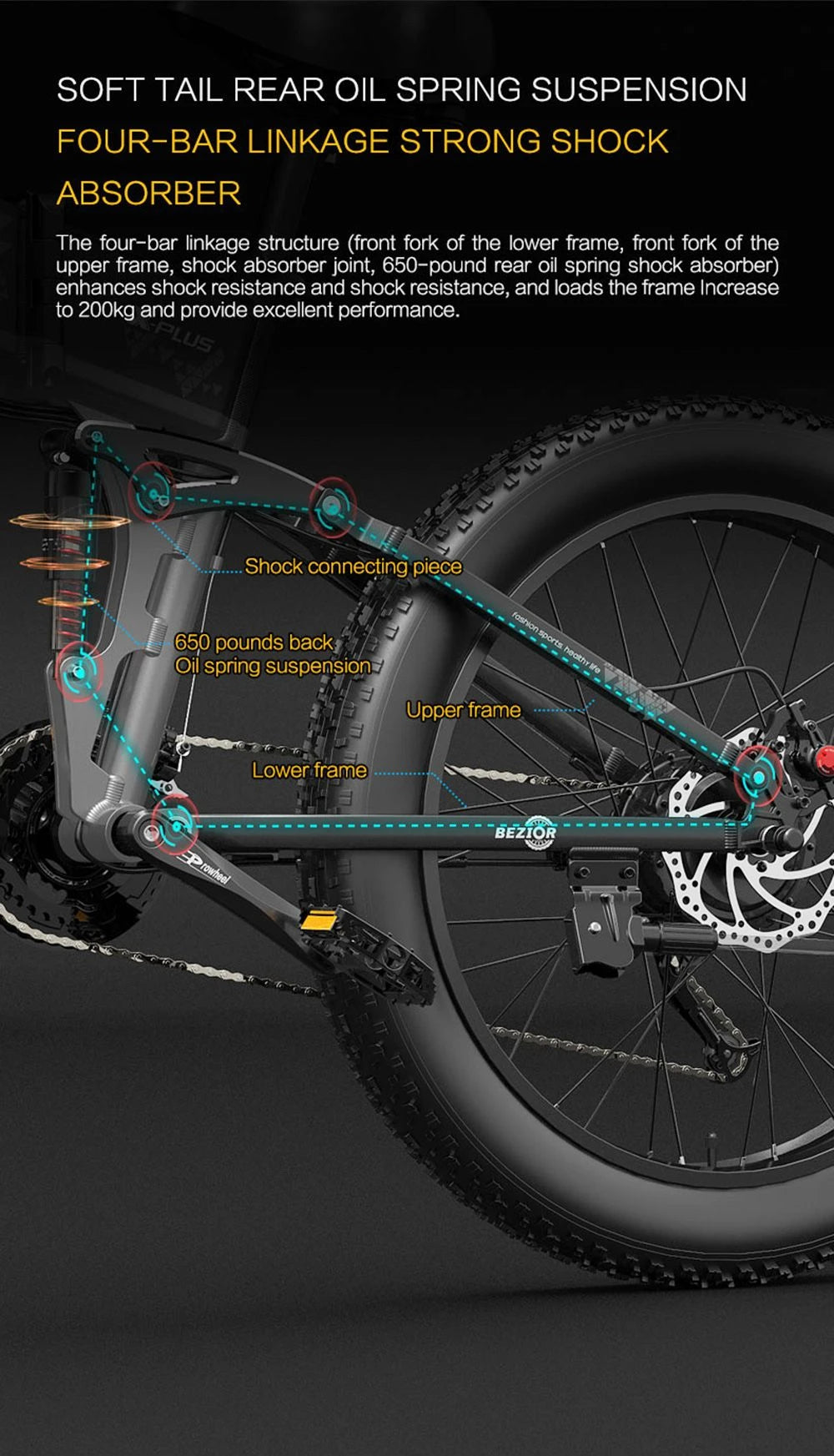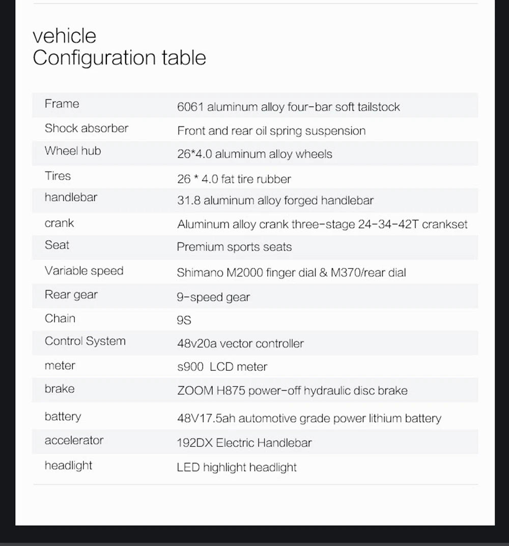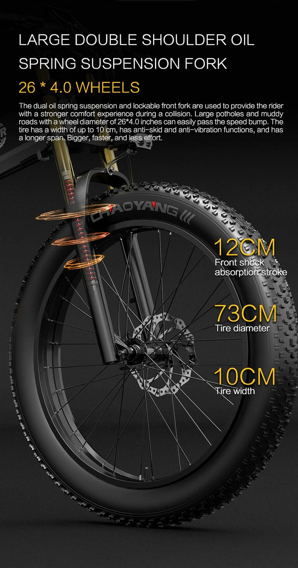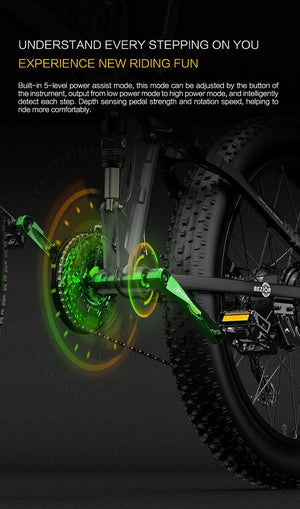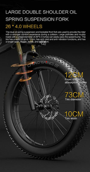 - 26×4,0″ breda däck: maximal stabilitet och komfort även i terräng.