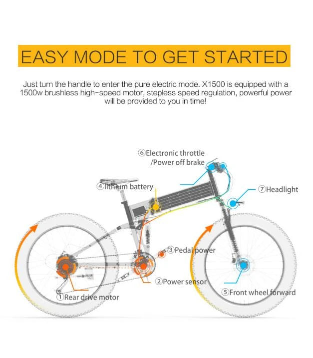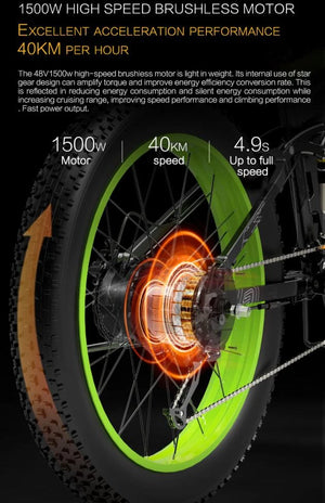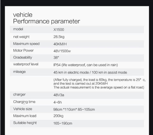 - Motor: 1500 W borstlös baknav, 48 V