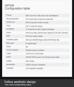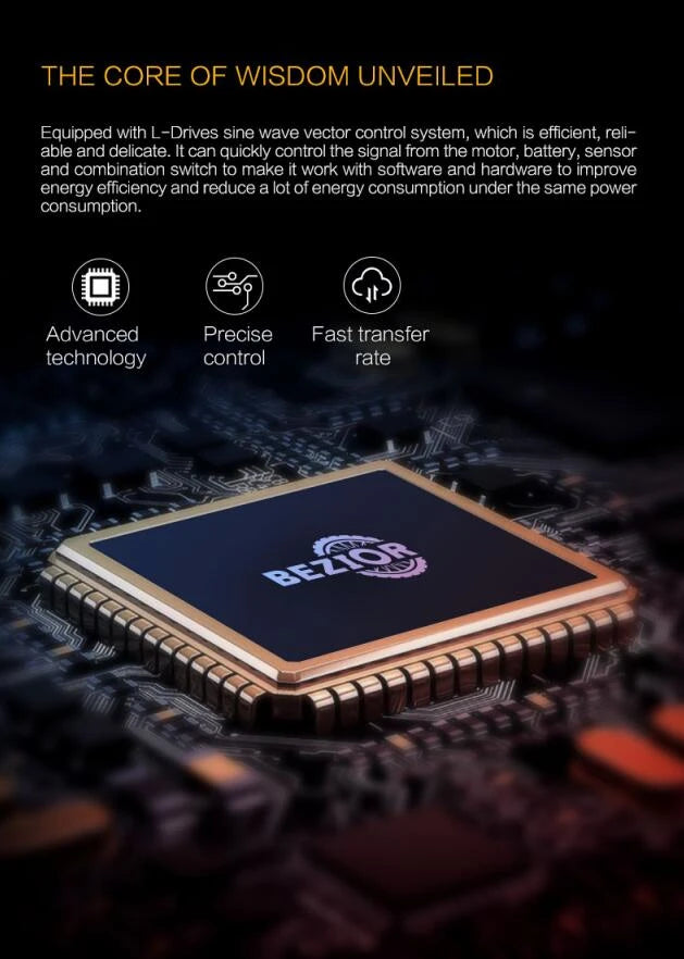 - 1500 W borstlös baknavsmotor (48 V): explosiv acceleration och stark klättring (upp till ca 38°).