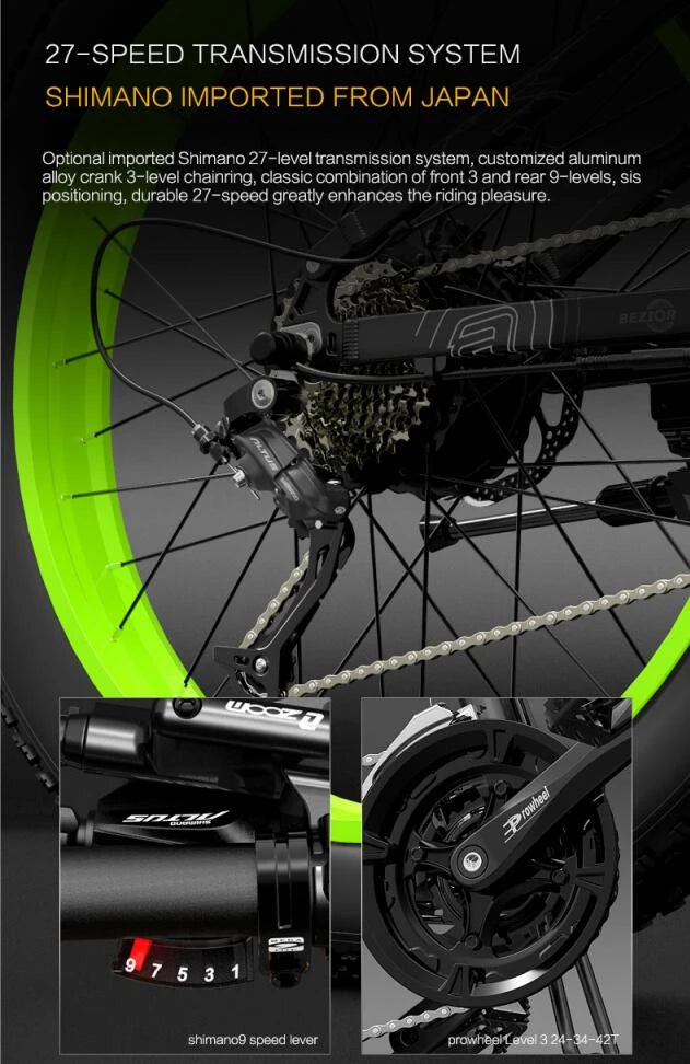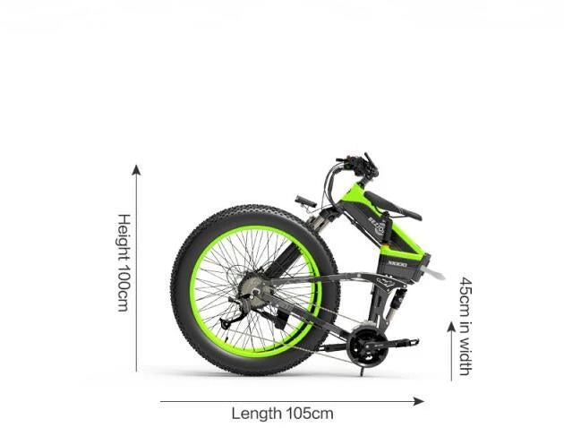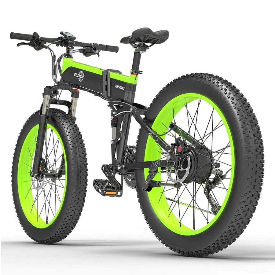 BEZIOR X1500 är en vikbar fatbike för dig som vill ha maximalt drag och stabilitet på både asfalt och terräng. Den kombinerar en 1500 W baknavsmotor med 48 V / 12,8 Ah batteri och 26×4,0” breda däck för tryggt grepp året runt. Fri frakt – alltid.