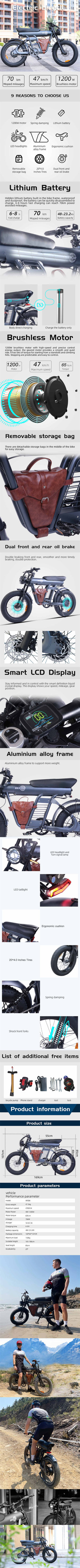 - 1200 W borstlös motor (48 V): kraftfull acceleration och bra klättring (≈ 35°). :contentReference[oaicite:0]{index=0}