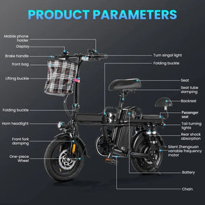- LED-ljus + varningsblinkers fram & bak: bättre synlighet och säkerhet i trafik.