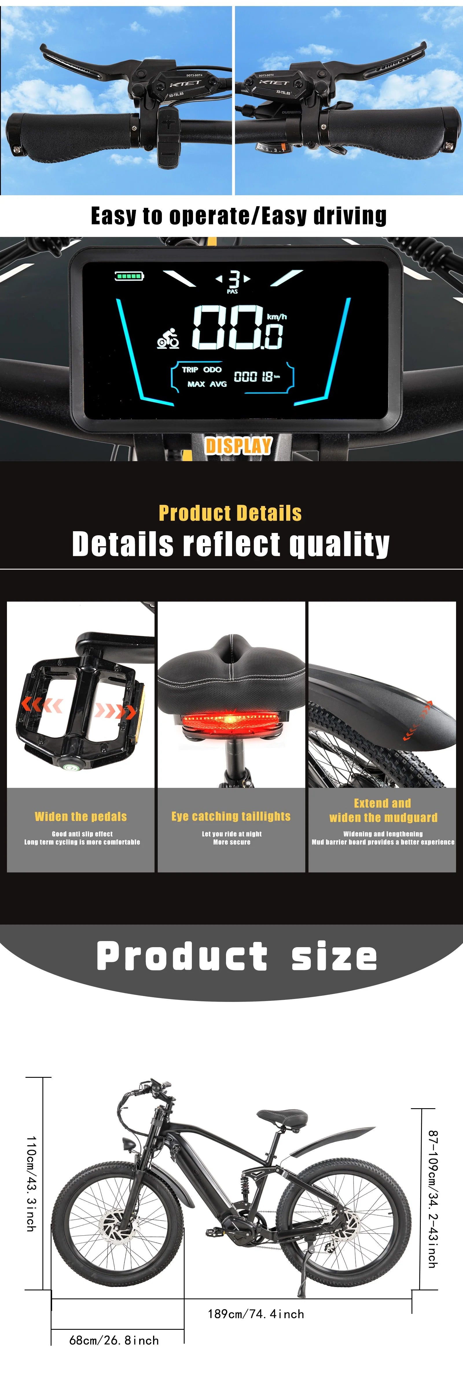 - LCD-färgskärm: tydlig display med hastighet, effektlägen och batteristatus.