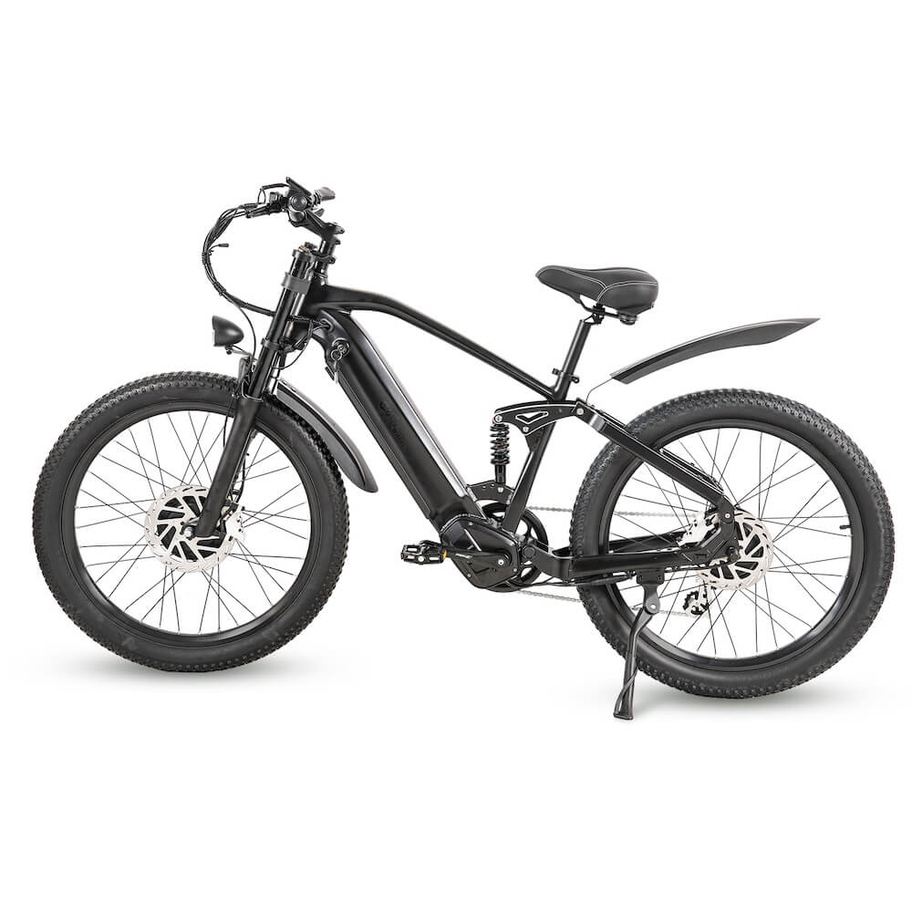 - Full stötdämpning: framgaffel + mittmonterad bakdämpare gör färden mjukare över sten och gupp.