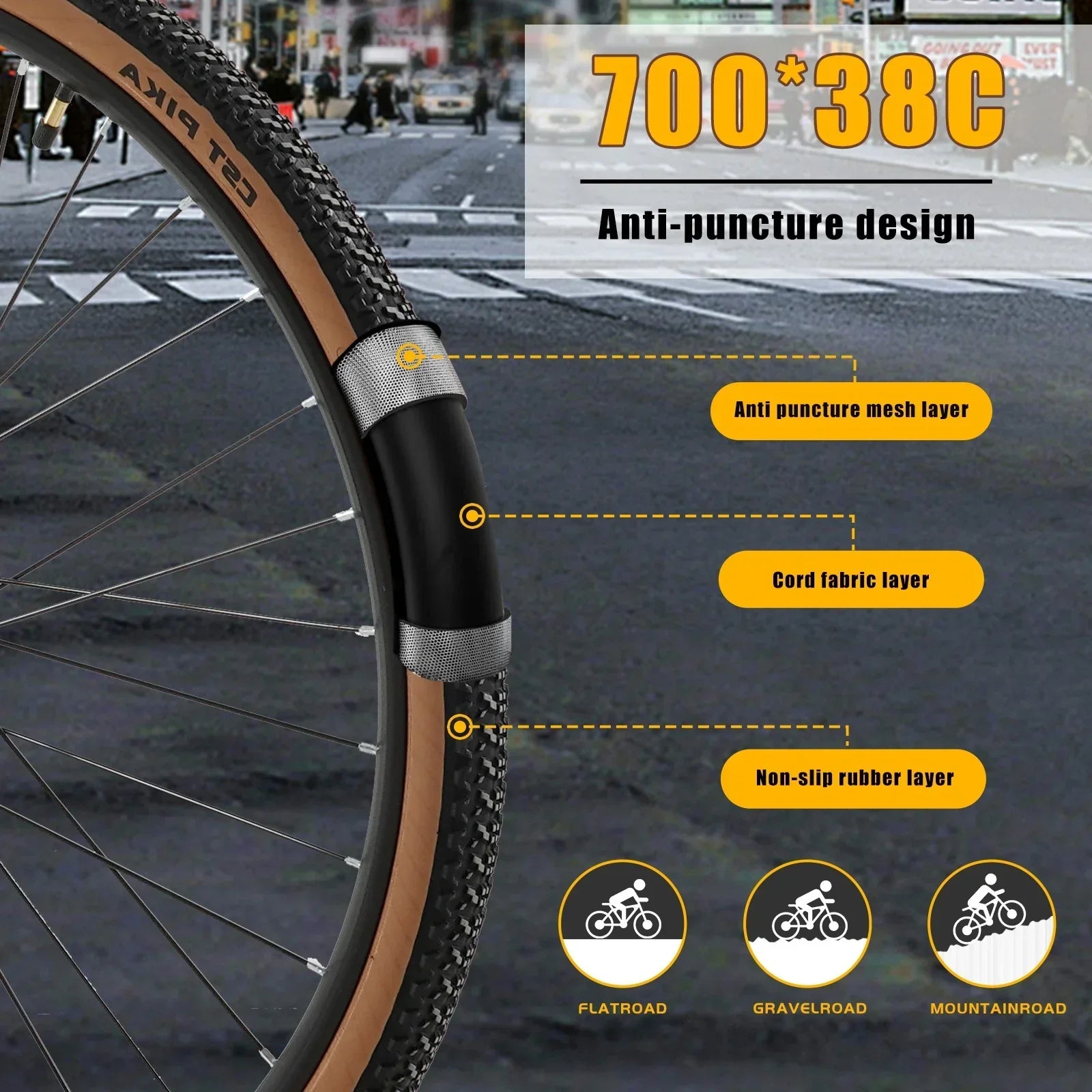 700×38C gravel-däck | Snabbare rull, lättare cykling och stabilitet på grus. |