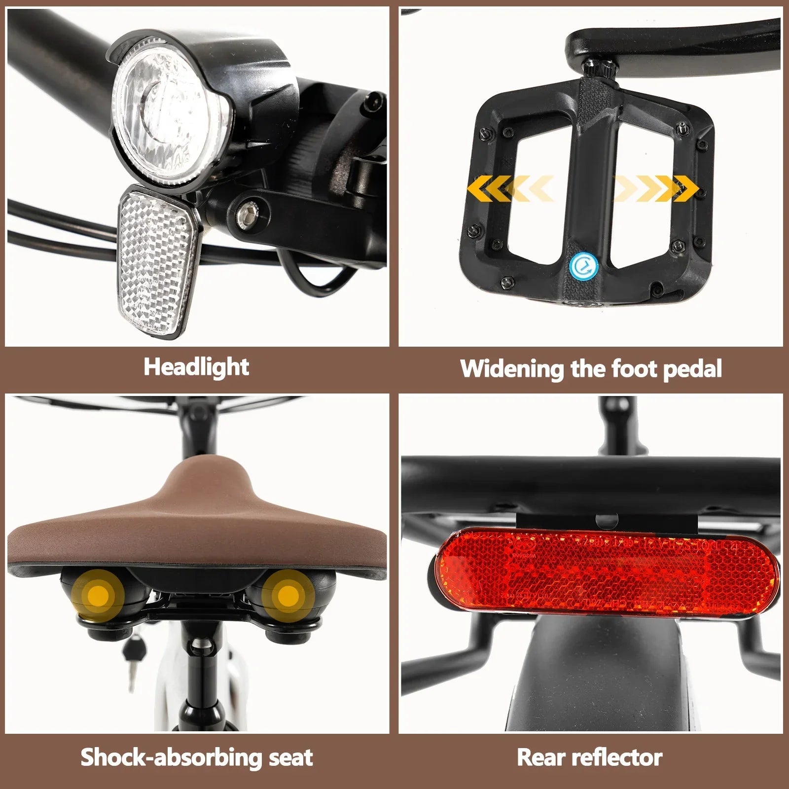 - 36 V / 10 Ah batteri (~360 Wh): räckvidd upp till ca 60–80 km med trampassistans.