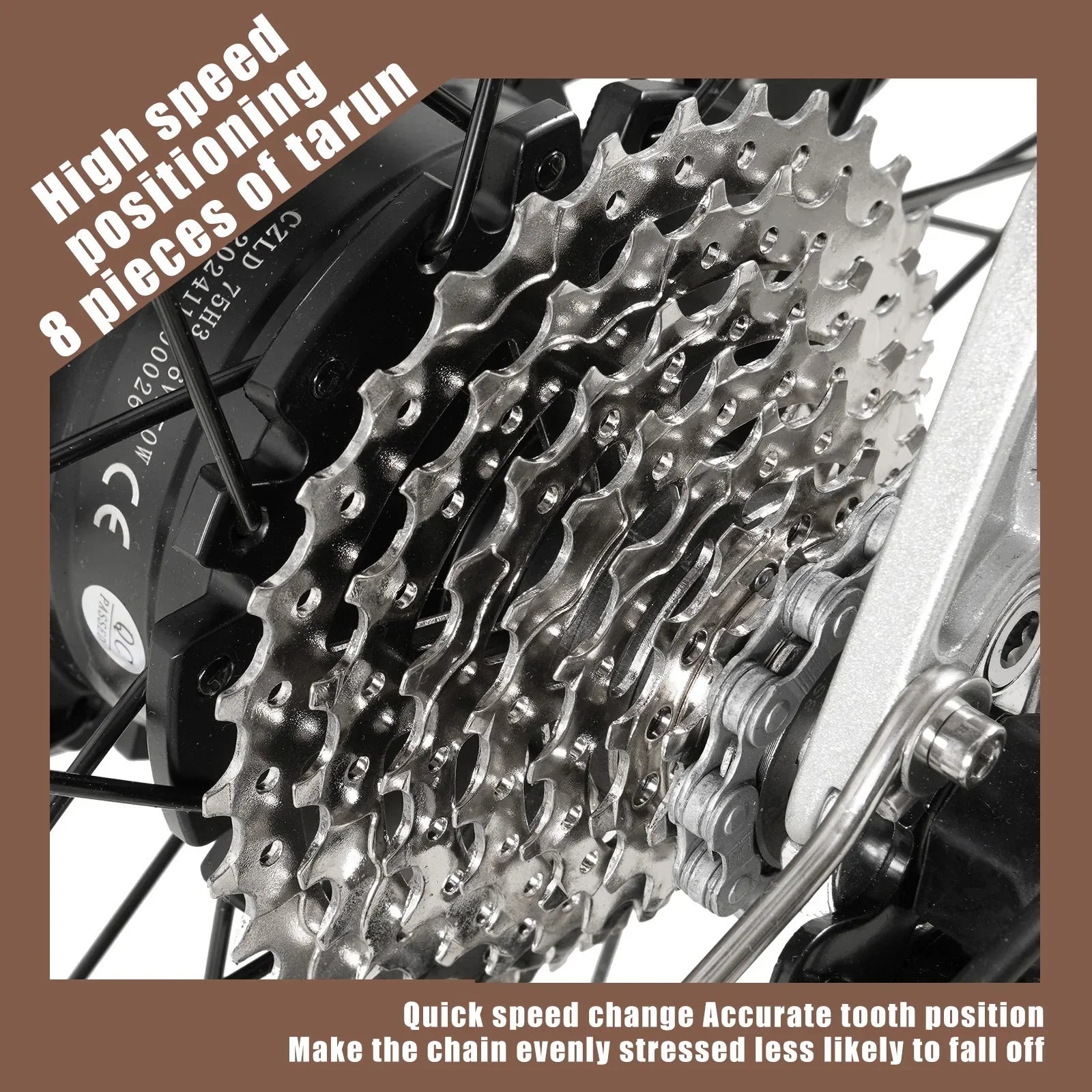 Shimano 8-växlad | Flexibel växling för både backar och platt väg. |