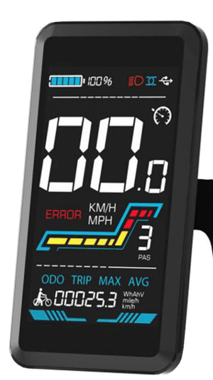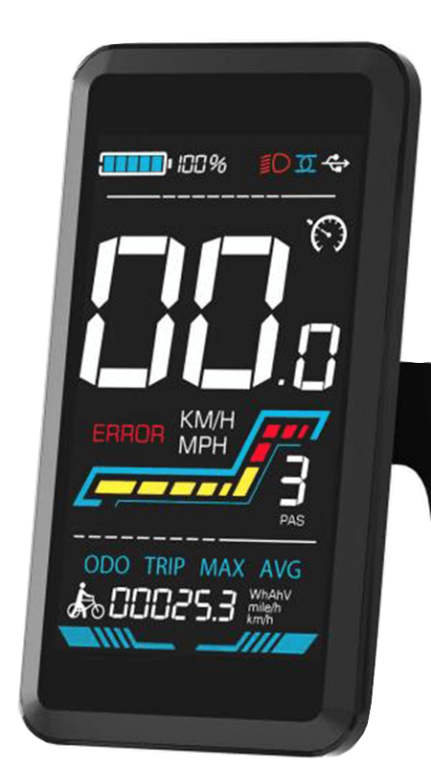 - Display: LCD – hastighet, batteri, tripp, assistansnivå