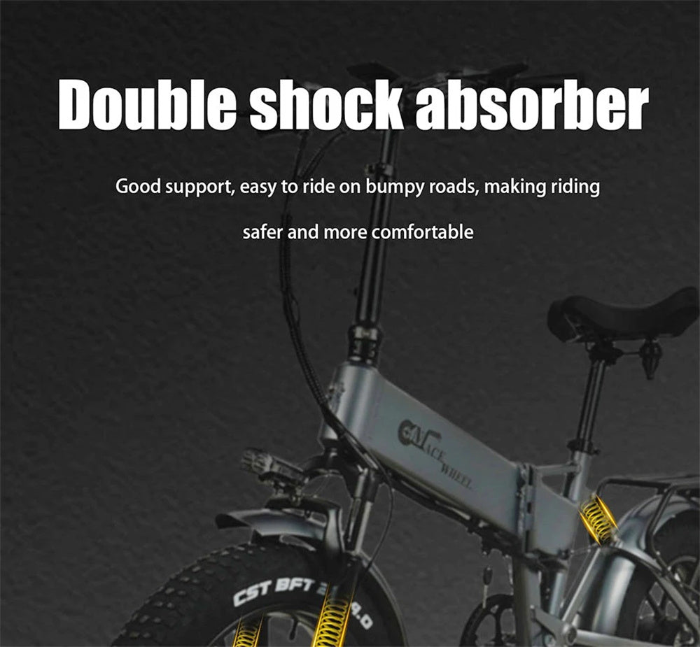 CMACEWHEEL RX20 (2025) är en kraftfull vikbar fatbike-elcykel som kombinerar smidig förvaring med seriös körkänsla. Med 48 V drivsystem, 20×4,0″ fatdäck, dämpad framgaffel och skivbromsar får du grepp, komfort och kontroll – året runt. Löstagbart batteri gör vardagsladdning enkelt och den kompakta ramen fälls på sekunder. Fri frakt – alltid.