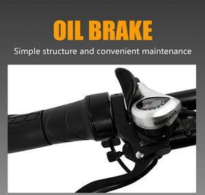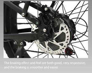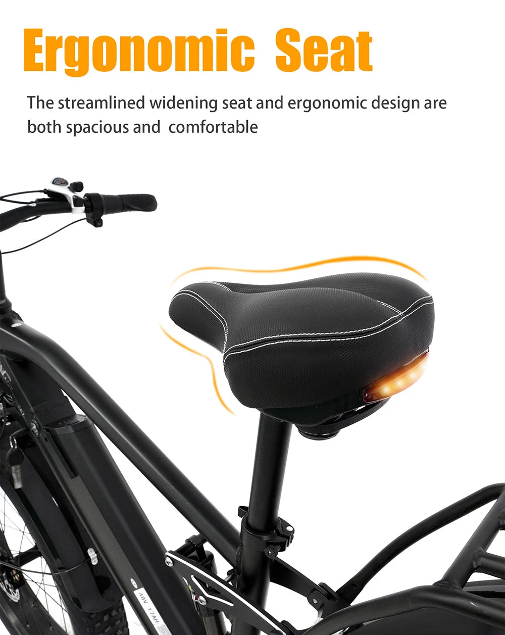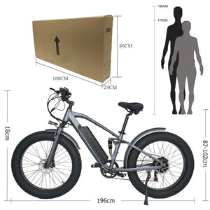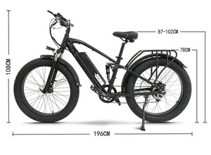 CMACEWHEEL TP26 Fat kombinerar kraft, komfort och terrängkapacitet. Den har en 750 W borstlös bakmotor (48 V), ett 17 Ah löstagbart batteri och robust full-suspension (fram + bak dämpning). De breda 26×4,0″ fatdäcken ger grepp på snö, grus och ojämna underlag. Hydrauliska skivbromsar, färg-LCD och genomtänkta detaljer gör den redo för både äventyr och pendling. Fri frakt – alltid.