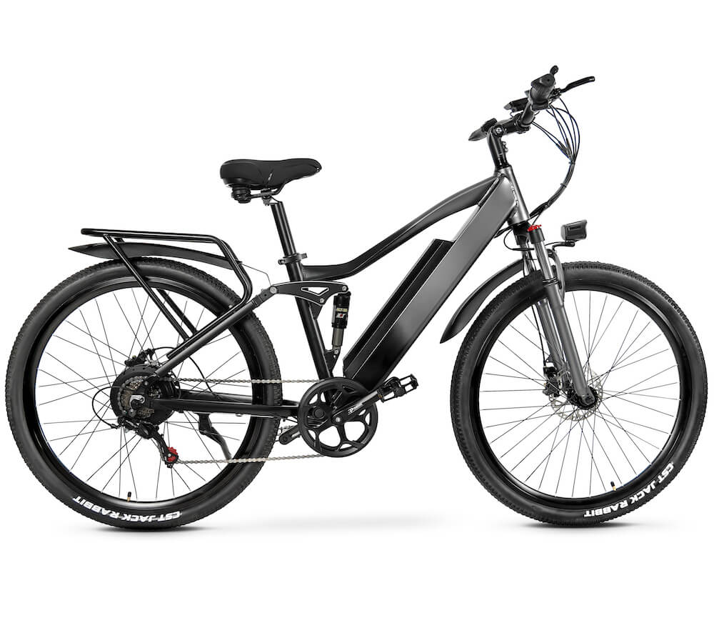 - Full-suspension: dämpning fram och bak ger mjuk och kontrollerad färd på ojämnt underlag.