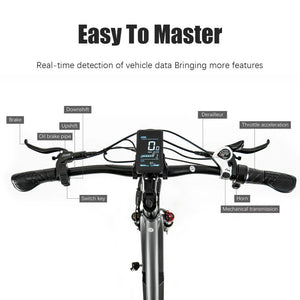 Skivbromsar + LCD-display | Säker bromsning; full koll på hastighet, batteri och stödläge. |