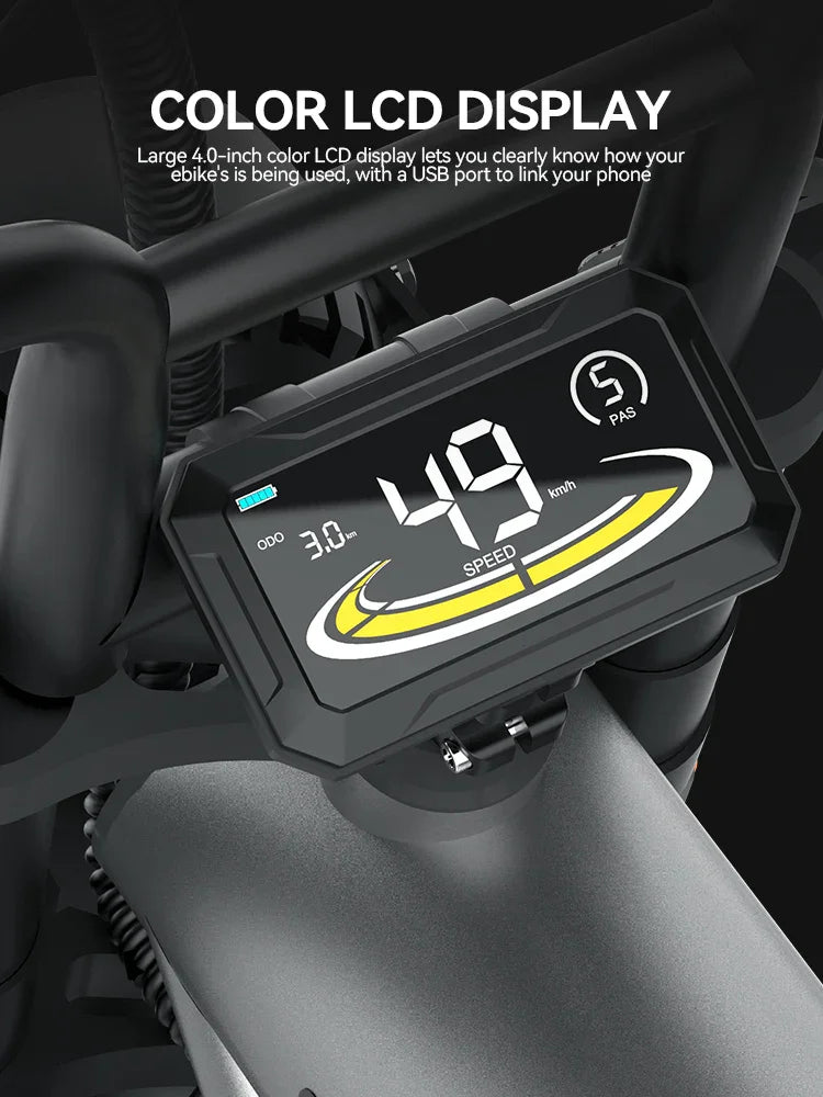 - LCD-display & flera assistansnivåer: tydlig översikt över fart, batteri och stöd.