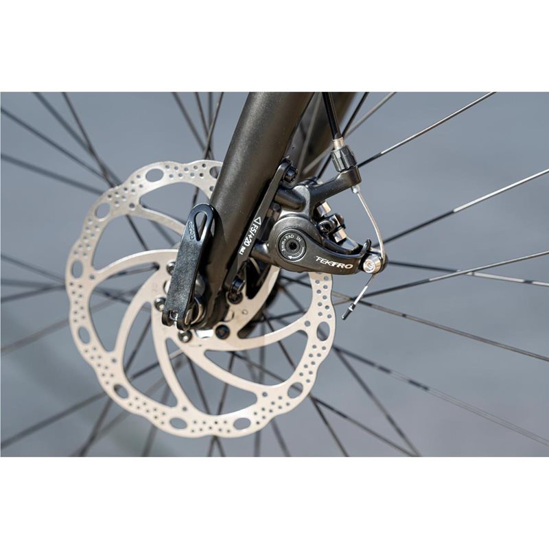 Kombinationen av breda 700×45C-däck, mekaniska skivbromsar och 1×-drivlina ger enkel hantering och bra bromsverkan i alla väder. Ramens monteringspunkter gör det lätt att bygga din pendlar- eller äventyrscykel med skärmar och packning.